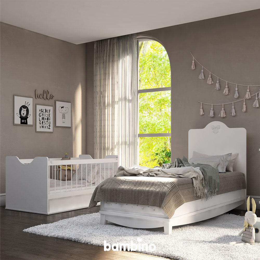 تخت نوزادی سفید و ننوی کودک سرویس مدل ونیز