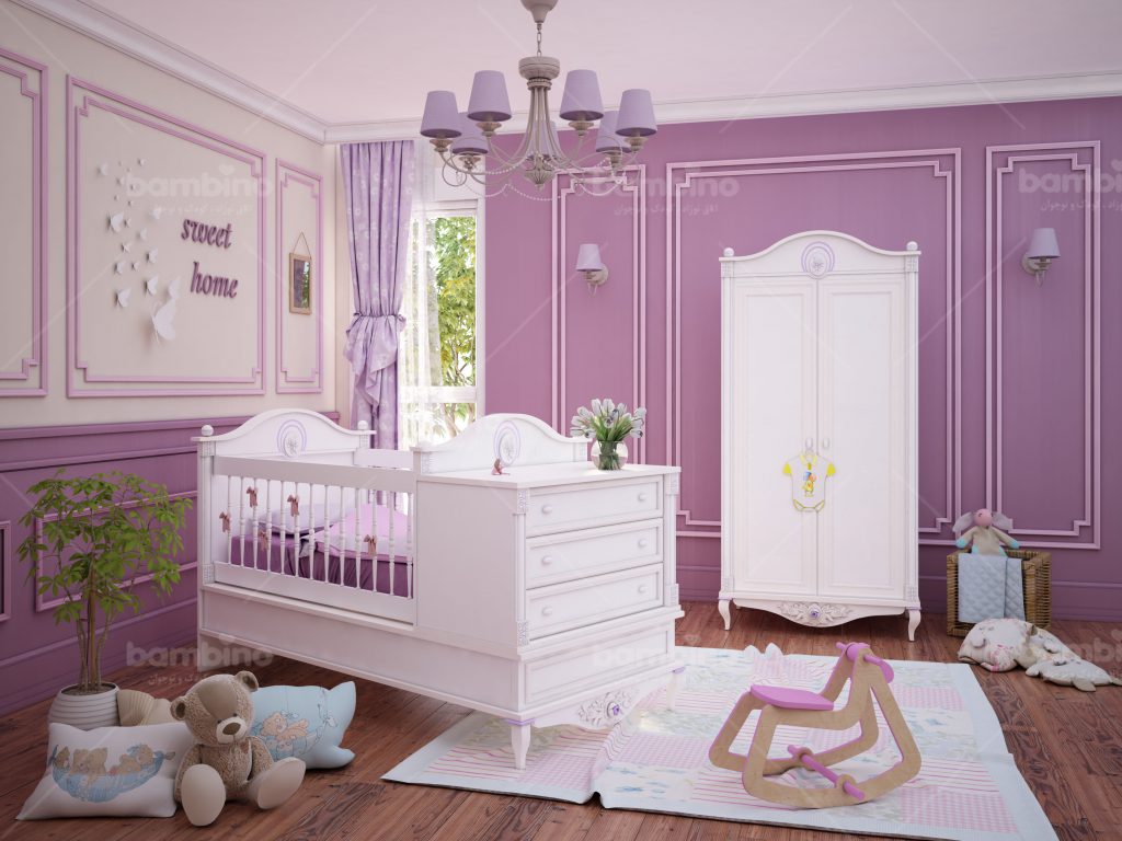 تخت نوزاد نوجوان – کمد دو درب – کمد سه درب – ویترین تک درب – دراور سه کشو – شلف دیواری و قاب آینه